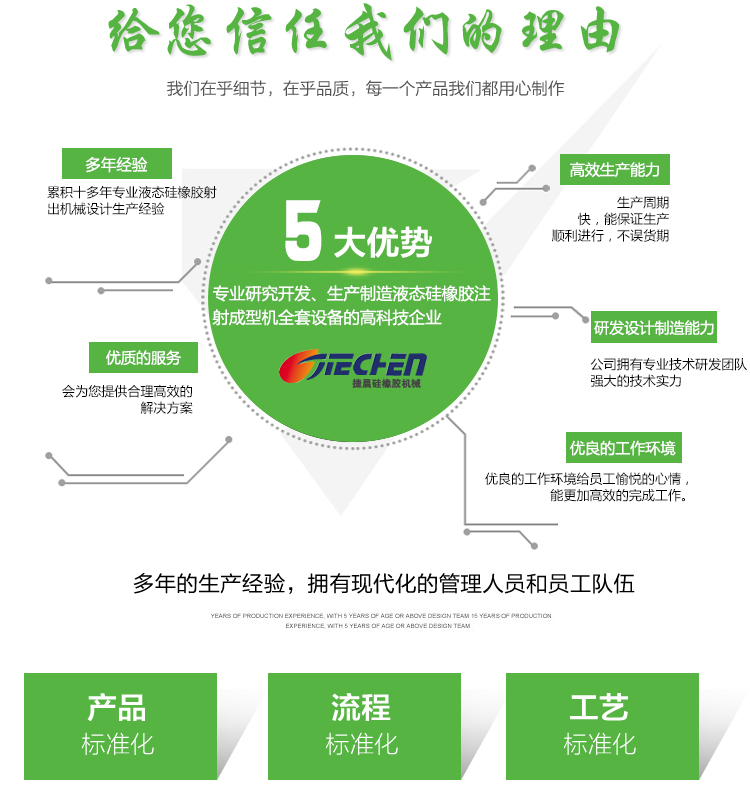 東莞市捷(jié)晨矽橡膠機械有限公司是一家專(zhuān)業研究開(kāi)發、生產製造液態(tài)矽膠機、液體矽膠機(jī)、液(yè)體矽(guī)膠注射成型機、液態矽(guī)膠射出機、液態矽膠送料(liào)機、液態矽膠供料機等液態矽膠射出成型機全套設備的高新技術企業(yè)。生產的液(yè)態矽橡膠射出機廣泛用於醫療、母嬰、情趣用品、汽車(chē)配件、電子配件、文(wén)具、餐廚、潛水、衛浴等(děng)領域,全方位滿足不同客戶的各種(zhǒng)需求。聯係電話:189-2556-0965