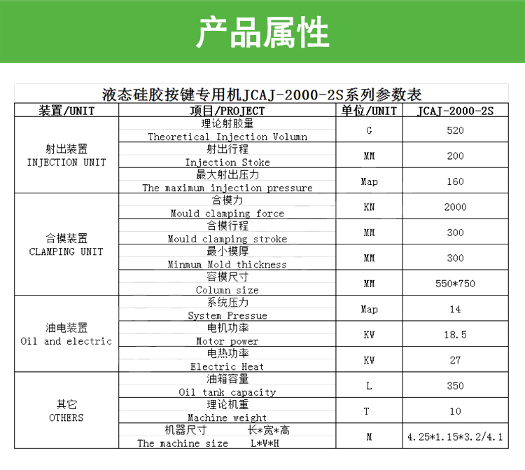 200噸 液態矽膠按鍵機的特點: